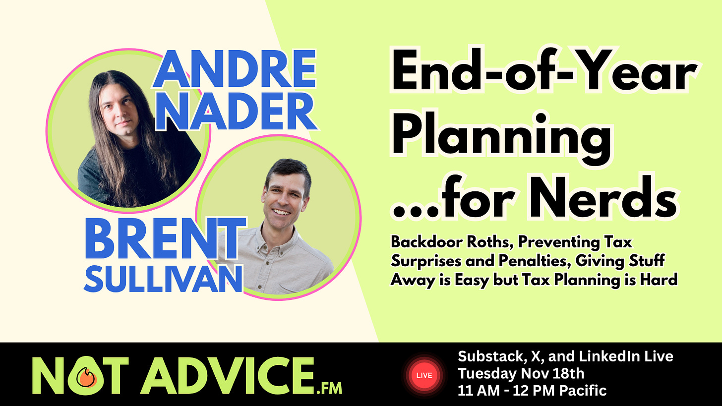 and I are back for another live recording of the Not Advice pod on Tuesday. Join us on Substack (you’ll receive a reminder email if you subscribe to either of us), or on LinkedIn live, or on my twitter.Disclaimer: This is educational content. It is not investment, tax, or legal advice. It is not an endorsement of any product, strategy, or vendor. Consult an adviser about your particular circumstances, the partnership in question, and the conditions, risks, and tradeoffs of participating.