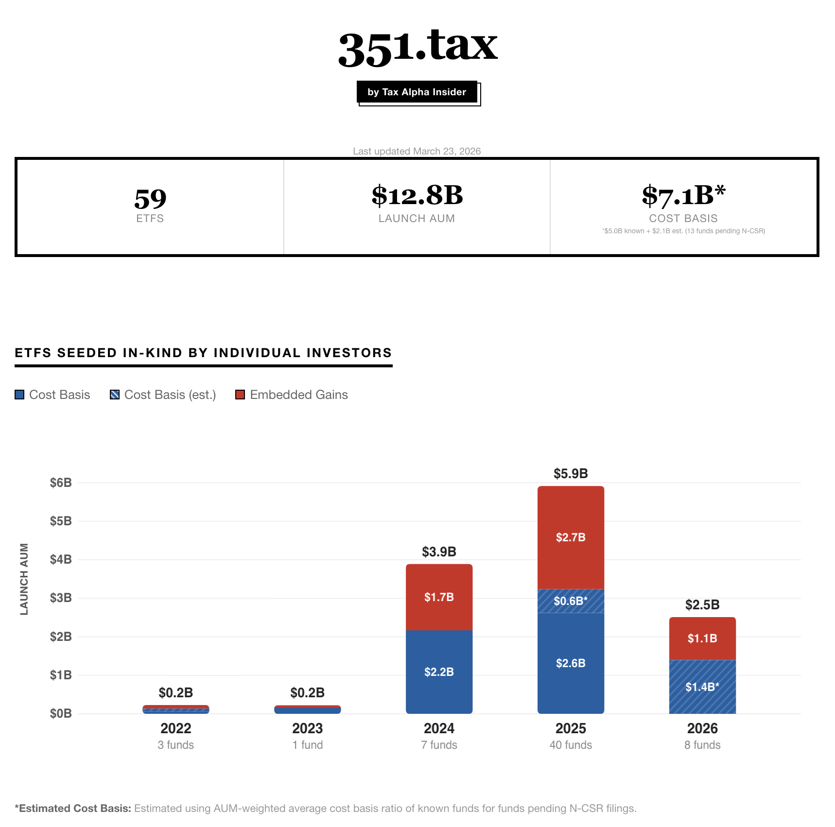 My reporting, corroborated by regulatory filings and contemporaneous materials, shows that 59 ETFs have been seeded in kind by individual investors under Section 351 since 2022.