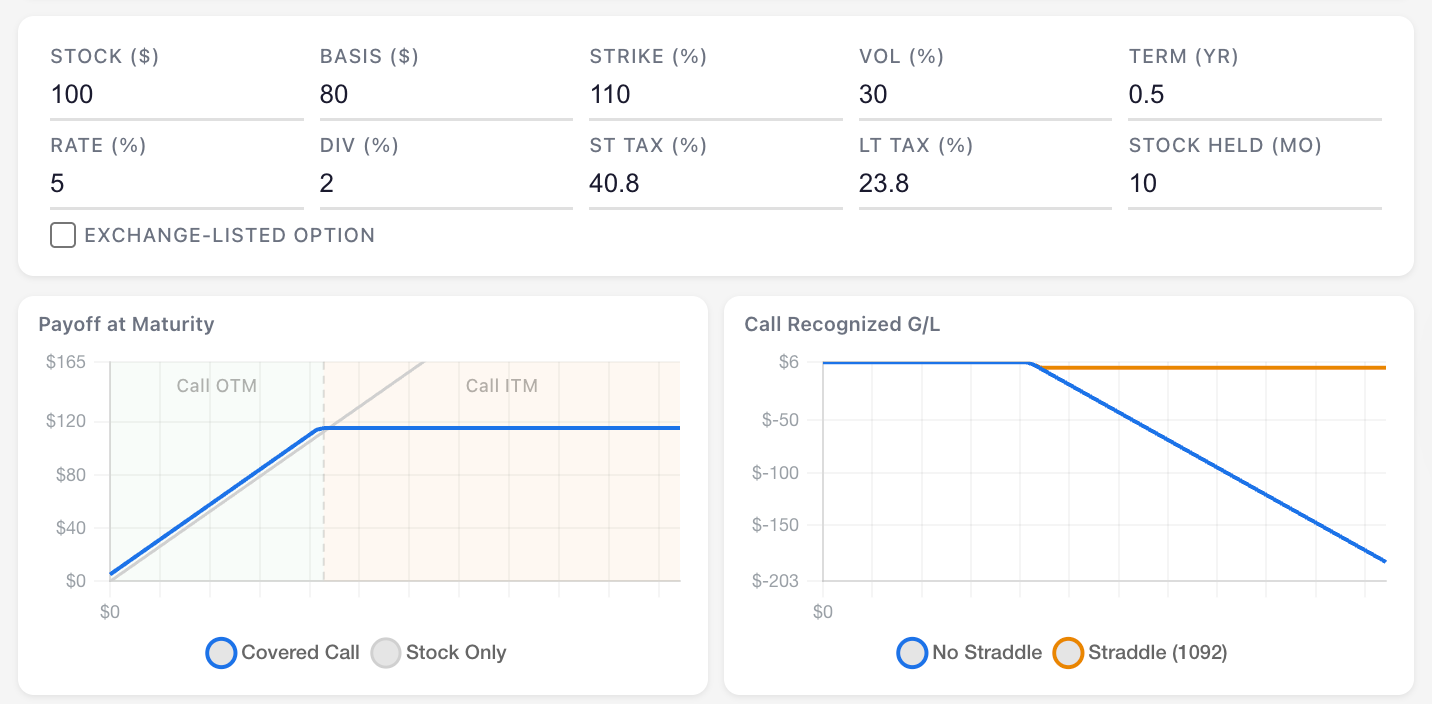 A covered call is a great toy for understanding the straddle rules, so I built a little visualizer to show how it all works.