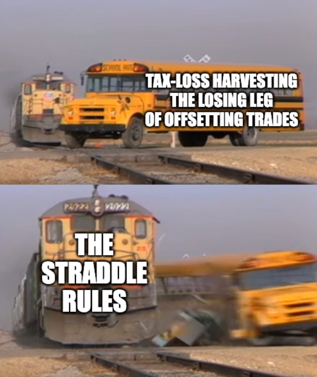 The trade was essentially to hold two offsetting positions, harvest the losing leg before year-end, and defer realizing gain on the winning leg, thereby indefinitely deferring total portfolio net gain.