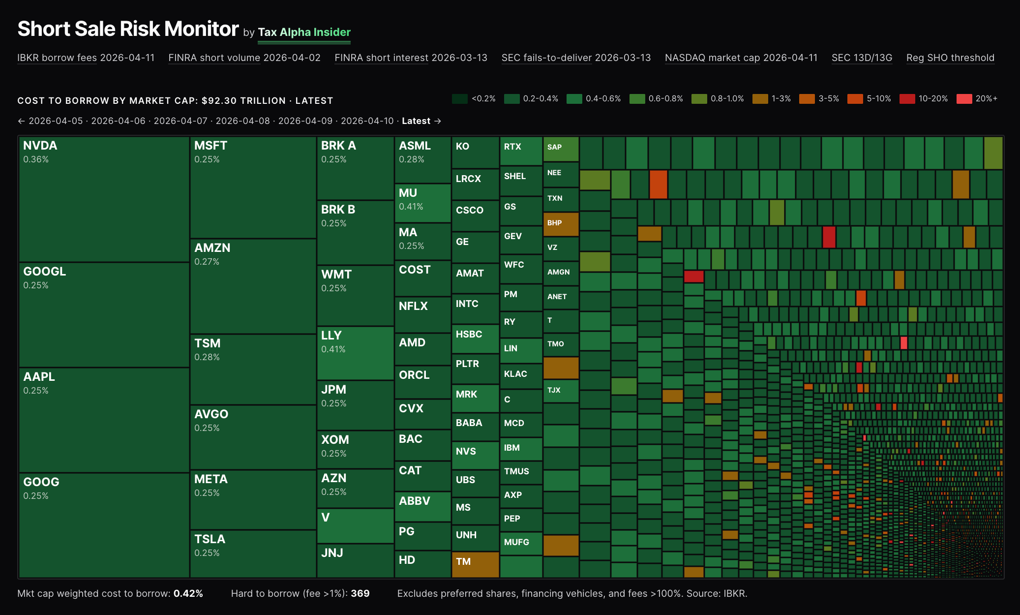 To make borrow fees less obscure, I went way overboard and built a dashboard, pulling the current rates from Interactive Brokers (thousands of names) daily at a new little app I’m calling Borrow Quest.
