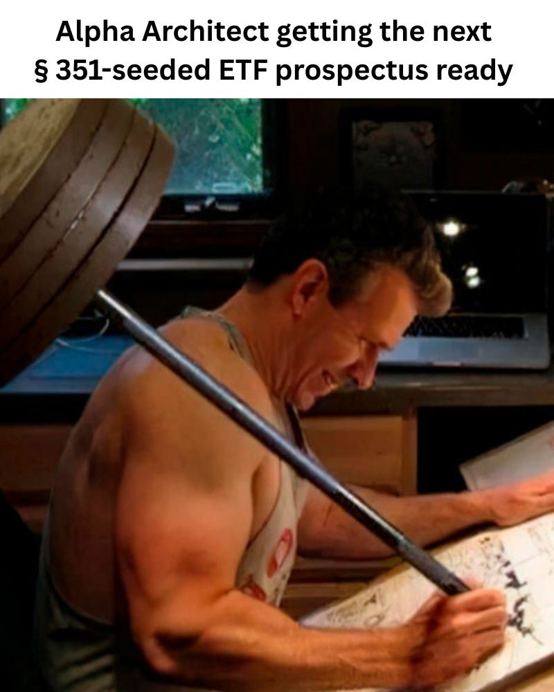 Last December, I speculated that normies (i.e., everyday investors, advised and unadvised) seeding ETFs in-kind would pick up steam, and my book included a section about how ETFs might consolidate down the road using a so-called §368 reorganization.